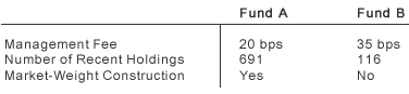 On a fee-per-unit basis, Fund B is cheaper than Fund A — 0.24 is less than 0.32. Fund B offers more than double the risk exposure but charges less than double the fee. Investment professionals who focus on the absolute price of investment without considering the product will surely be surprised when they see this.