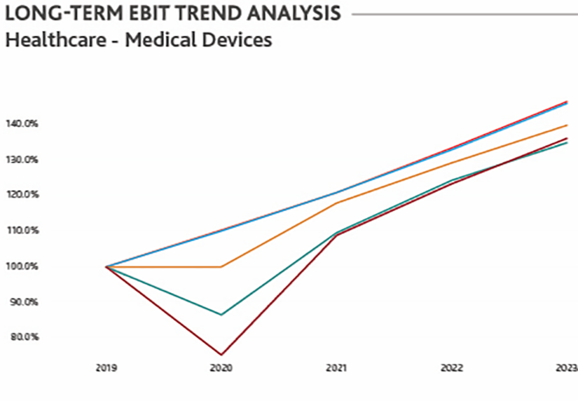 The online retail and medical device sectors have outperformed expectations based on the downward revisions from pre- to post-COVID-19 2020 EBIT estimates, but their market performance aligns with long-term EBIT estimates. Investors are looking past the near-term drop in profitability and focusing on the sectors’ long-term prospects.