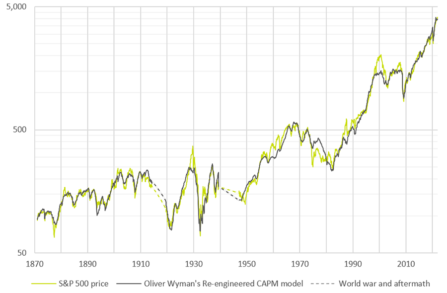 Re-Engineered CAPM Model: S&P 500 Real Price per Share, in US Dollars, January 1871 to December 2021