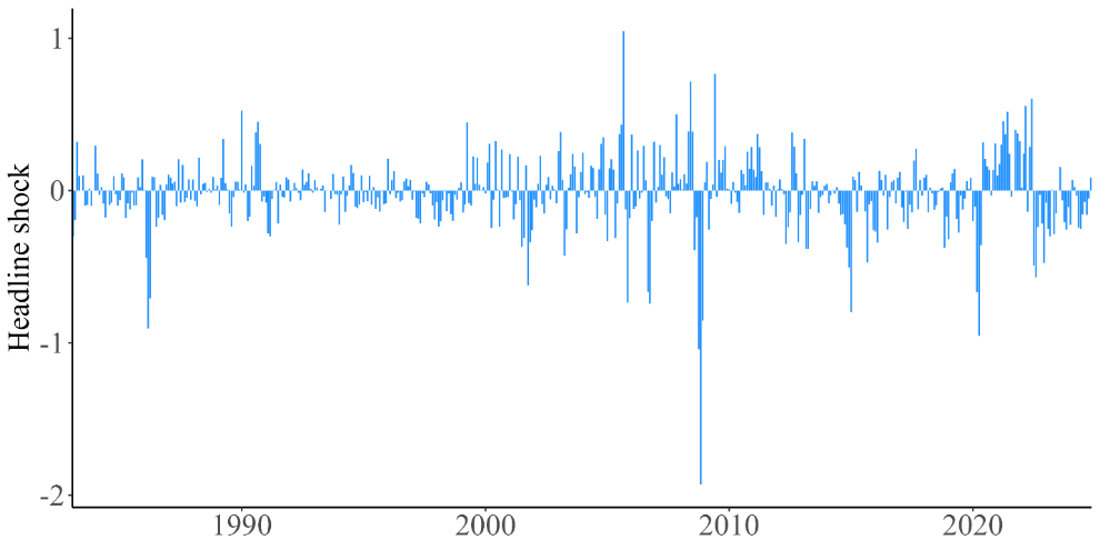 Exhibit 2.  Headline shocks can be positive as in 1990 and the early 2020s and unfavorable, or negative and favorable, as in the mid-1980s.