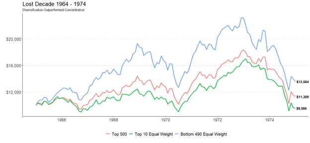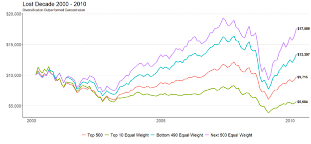 Over the last 10 years, market cap-weighted indices have dominated the investment landscape, like past episodes of market concentration in the 1960s and 1990s. While market cap-weighted indices have been beneficial for the average investor, are these same investors prepared if we enter another lost decade like the ones that transpired after past incidents of market concentration?