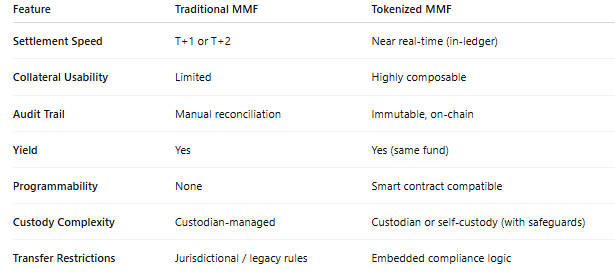 Comparative Table: Traditional MMFs vs Tokenized MMFs