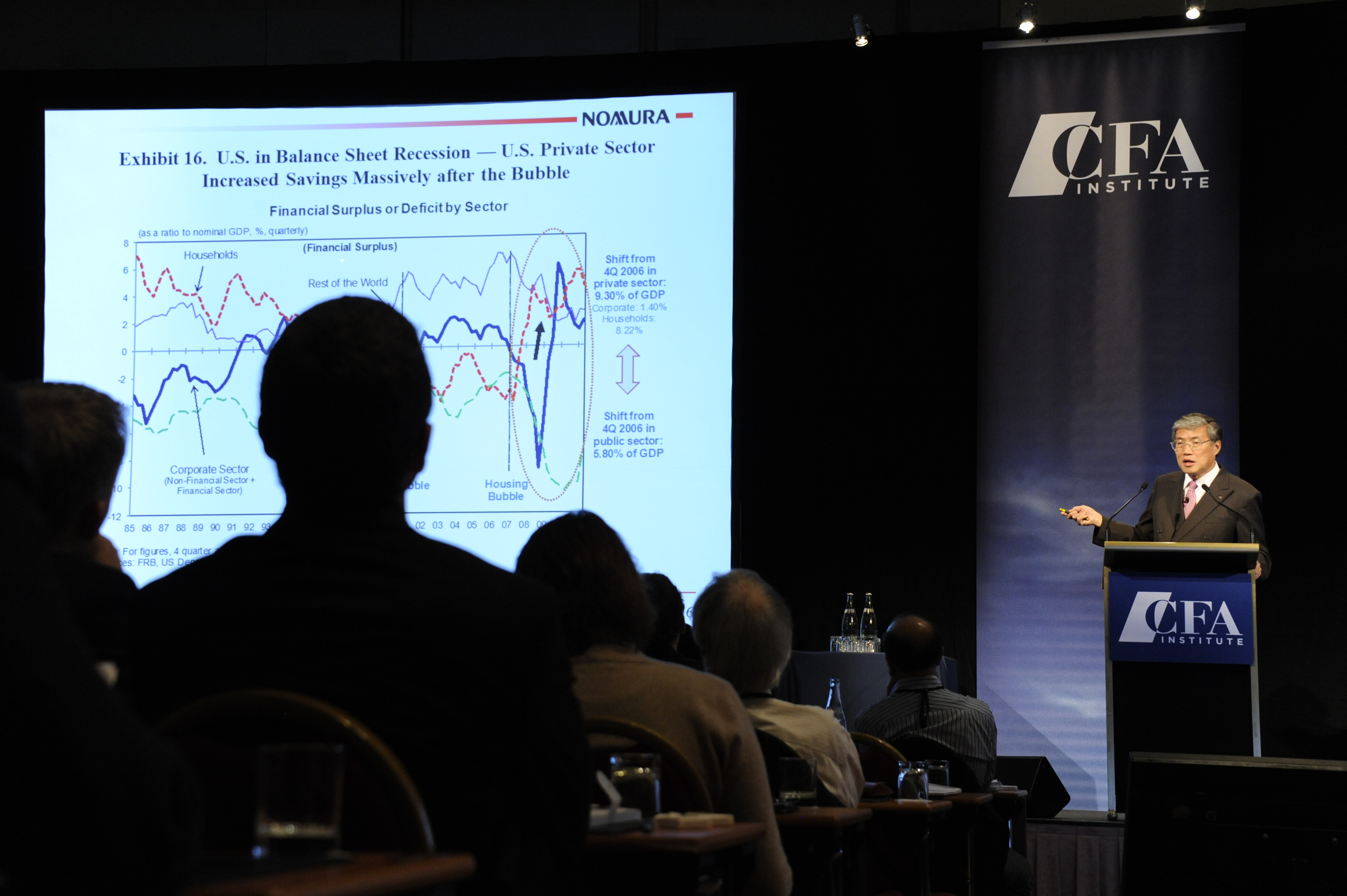 In one of the concluding sessions at the fourth annual CFA Institute European Investment Conference in Paris, Richard Koo, Chief Economist at Nomura Research Institute, challenged the widely held consensus view of fiscal consolidation and austerity as being the best pathway to economic recovery. Koo argued instead that sustained fiscal stimulus is the only economic policy that can forestall the protracted and potentially irreversible economic malaise in western economies — and he called on policymakers to learn from the Japanese experience.